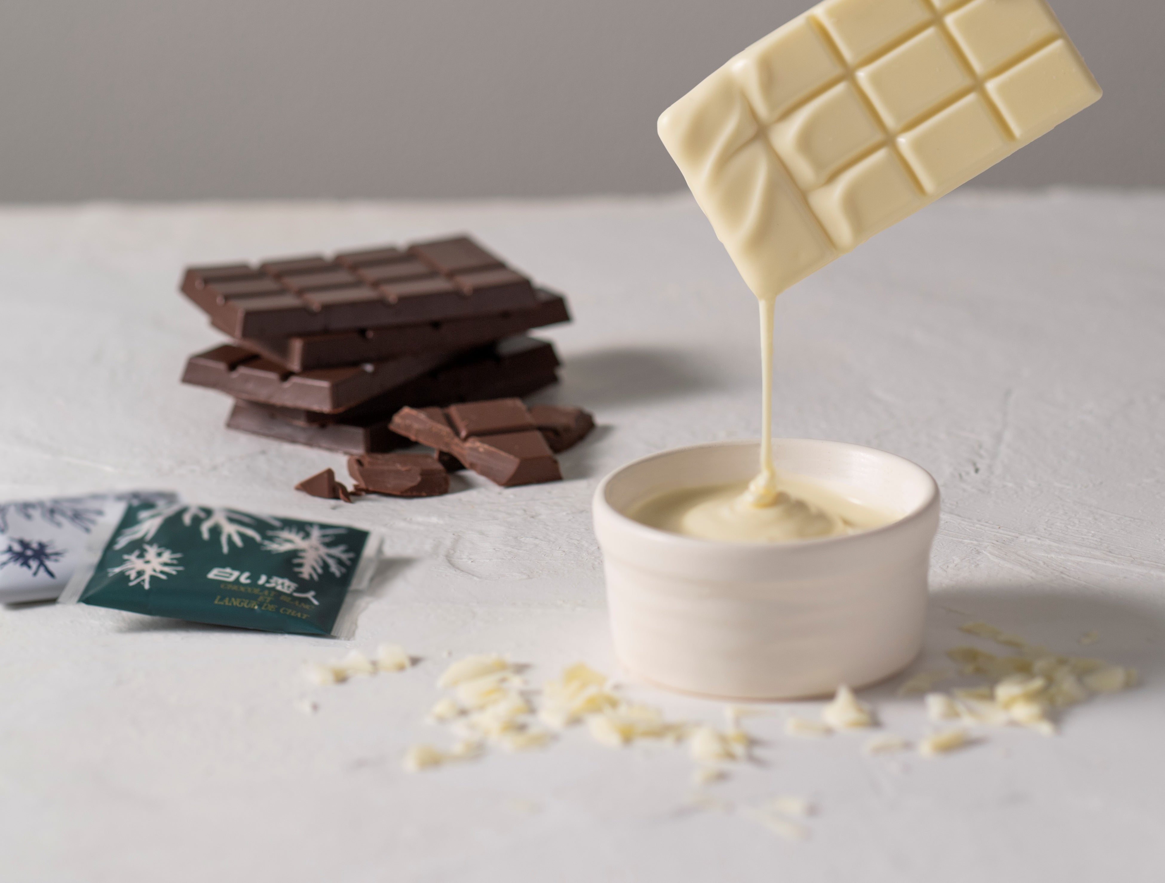 「白い恋人(ホワイト)」のホワイトチョコレートをアレンジし、口当たりなめらかな板チョコレートにしました。ホワイトチョコレートのクリーミーな甘味が広がります。