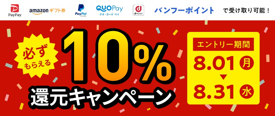≪エントリーで必ずもらえる!≫「全商品対象!夏の10%還元キャンペーン」を実施!