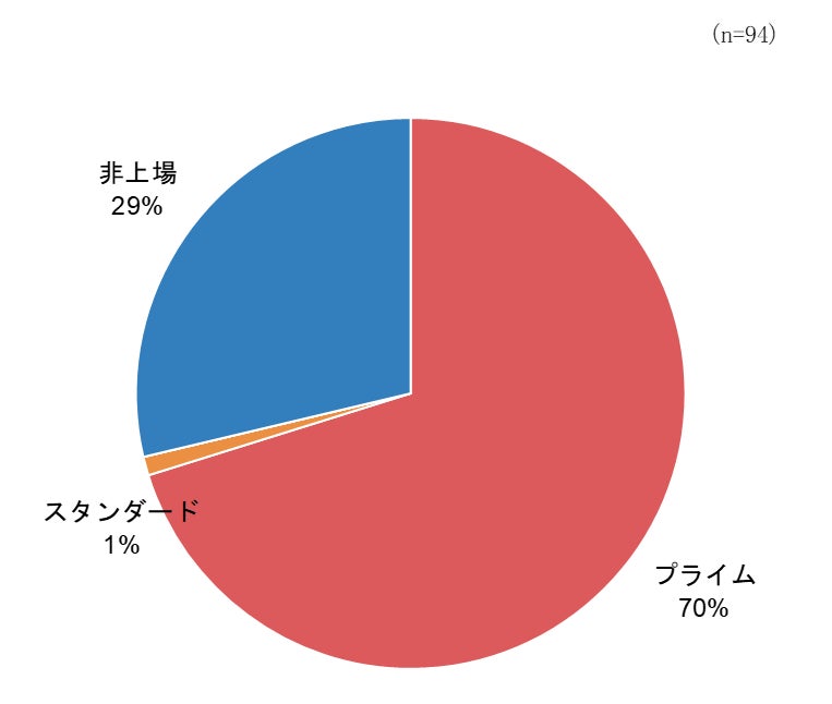 94社(回収率2.3%) うちプライム上場企業は66社 |