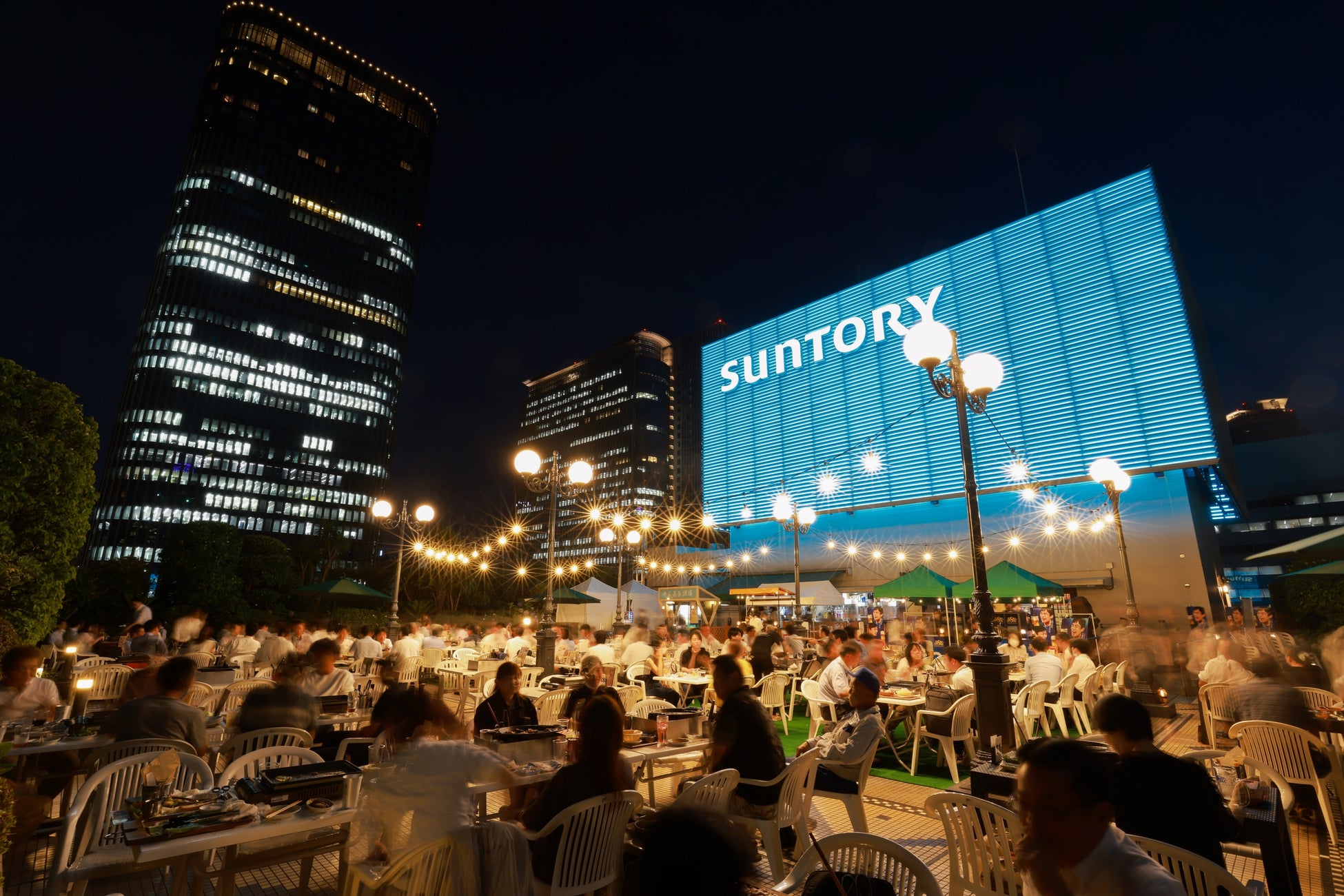 今年も、サントリー本社ビルの美しい灯りの前で最高に美味しい「サントリーの生ビール」と世界のBBQをお楽しみください
