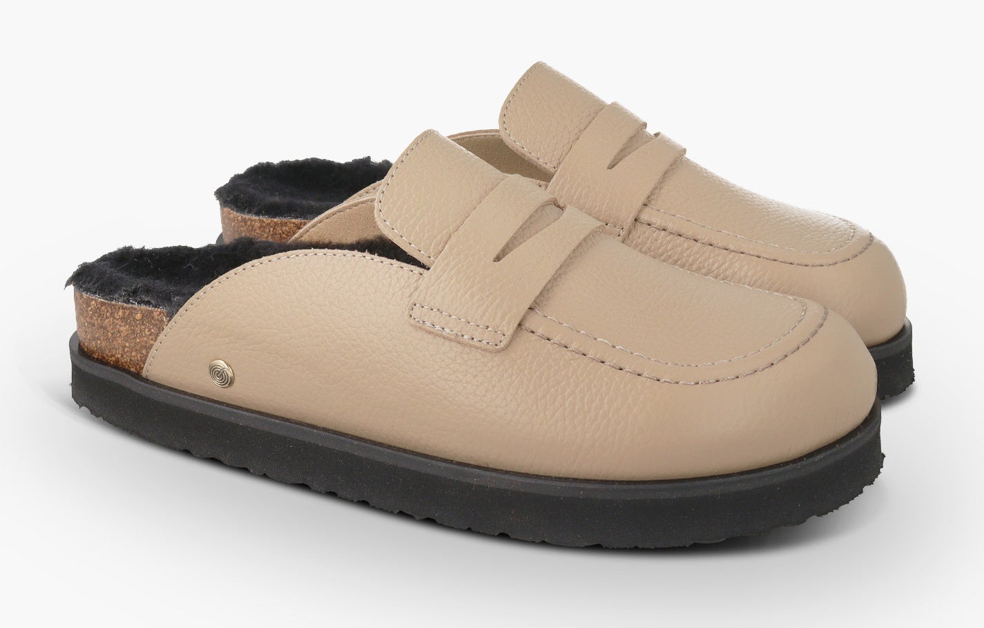 ローファー風のデザインで人気のクロッグサンダルが、高さ約2cmのEVAアウトソールでモードなスタイルにアップデートして新登場。アッパーには、シュリンクレザー風の型押しを施したLWG(※)ゴールド認定の高品質レザーを採用。フットベッドには天然ウールのボア素材を配し、暖かくソフトな履き心地です。天然コルクのミッドソールと人体構造に基づいて設計されたフォームのフットベッドが足をサポートし、足への圧力を分散。安定性を向上させ、快適な歩行を実現します。