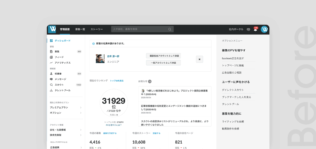 ビジネスSNS「Wantedly」、創業以来最大規模で「企業側管理画面」のユーザーインターフェースを刷新