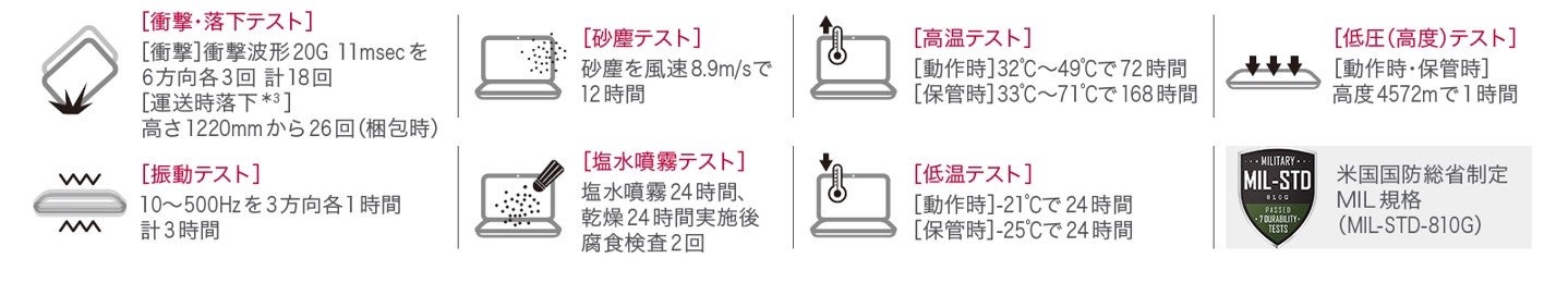 *2: MIL規格に基づいて、一部当社が設定した試験条件に従い試験しています。
