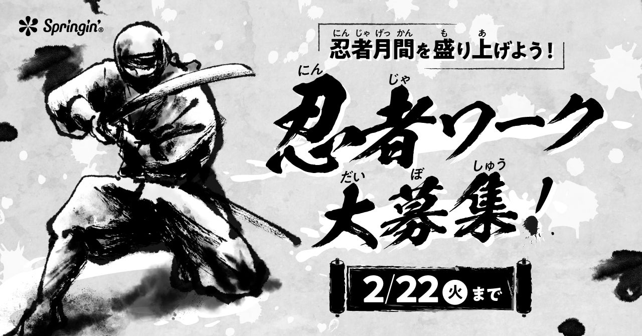 そこで、「Springin'(スプリンギン)」では「忍者月間」にちなみ、「忍者」をテーマにした作品を大募集いたします。忍術を駆使したアクションゲームや、屋敷からの脱出ゲームなど、忍者にまつわる作品であればなんでもOKです。みなさんの個性豊かな作品をお待ちしております!