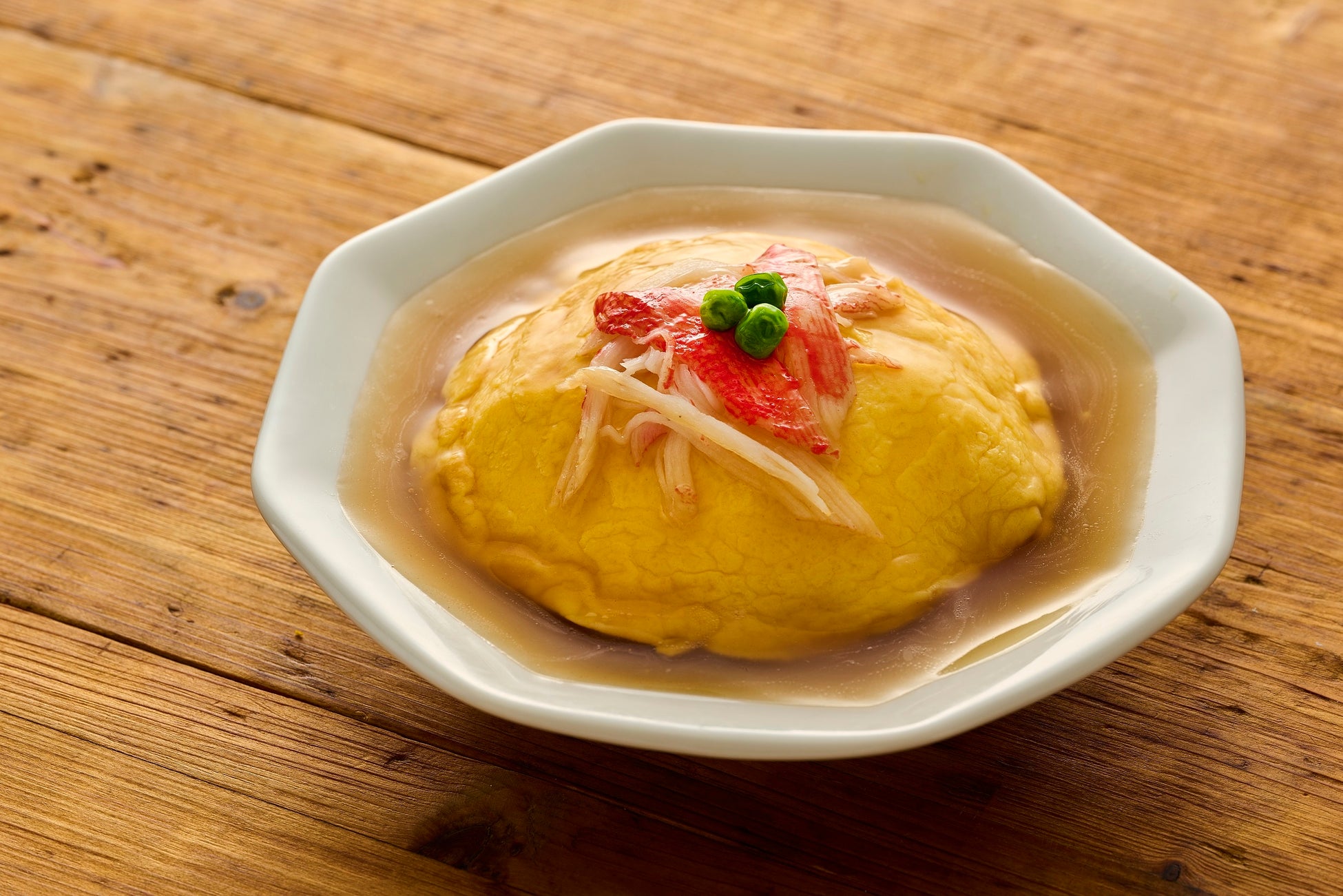 中華あんは鶏ガラスープをベースにごま油で風味良く仕上げ、隠し味に酢を加えることであんに複雑味を演出しています。たまごは1枚ずつ雪平鍋に液卵を流し込み、ジェットオーブンで焼成。たまごのおいしさとふわふわ食感を楽しんでいただけます。
