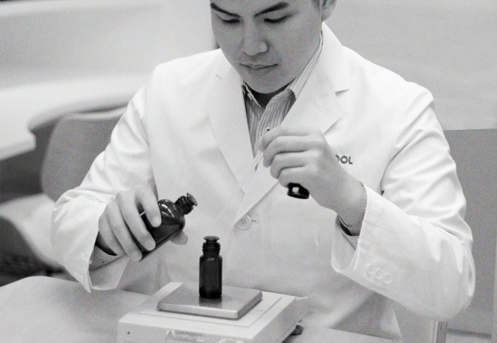 さいたま市にある当社のラボラトリー(香り技術研究所)では、当社専属調香師たちが四半世紀に渡って培ってきた伝統的なノウハウに最新の調香技術を織り交ぜ、世界各地で採取された天然素材を厳選して組み合わせて、香りを一つ一つ手作業で調香しています。