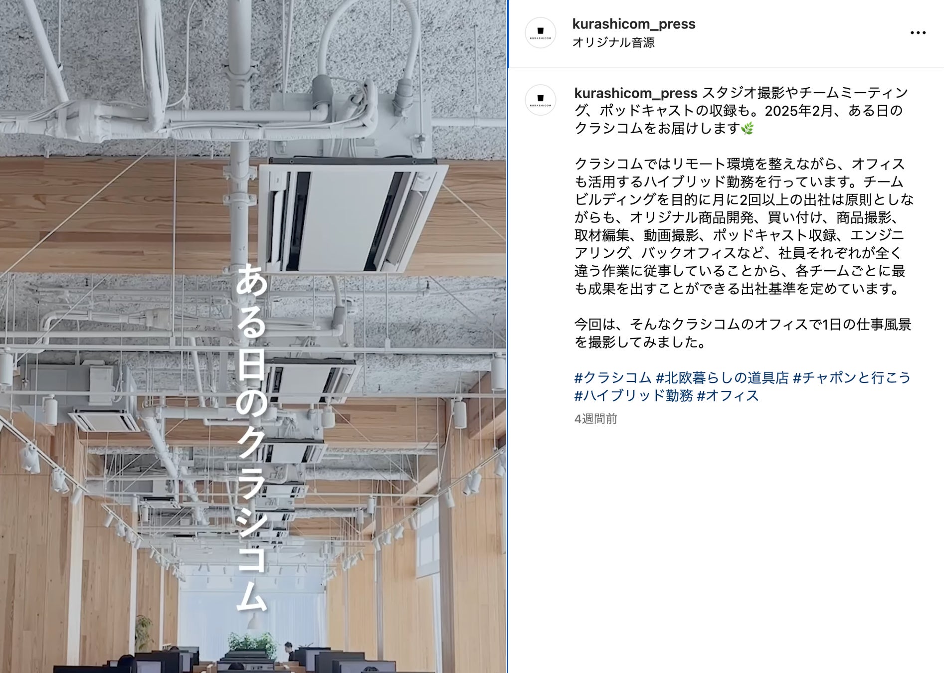 ライフカルチャープラットフォーム「北欧、暮らしの道具店」において、雑貨や衣類などの開発・販売、メディア運営などを行う株式会社クラシコム(本社:東京都国立市、代表取締役社長:青木耕平、以下「当社」)は、2024年3月に本社オフィスを移転しました。このたび、移転から1年が経過したことを機に、スタッフへのアンケートを実施し、その結果を公開いたします。あわせて、オフィスの広報活用事例についてもご紹介します。