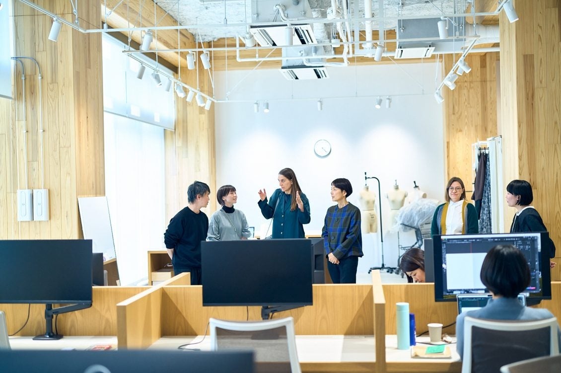 アパレルや雑貨など、オリジナル商品の制作を想定して設けられたスペース。チームでのコミュニケーションを取りながら作業できるよう、台の大きさや高さにこだわって設計されています。