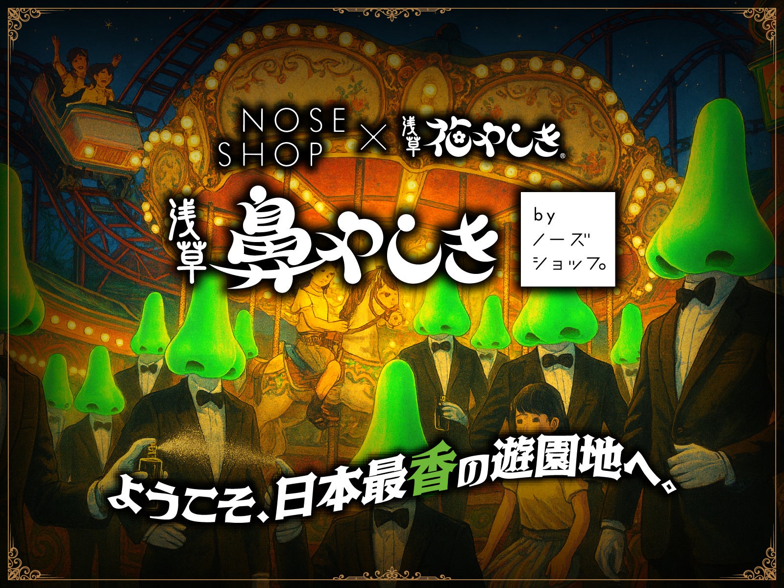“香水砂漠”と呼ばれる日本の香水市場に一石を投じ、日本初のニッチフレグランス専門店を展開する「NOSE SHOP(ノーズショップ)」は、浅草花やしきにて嗅覚で楽しむ遊園地「浅草鼻やしき by NOSE SHOP」を、2025年11月7日(金)、8日(土)の2日間開催いたします。