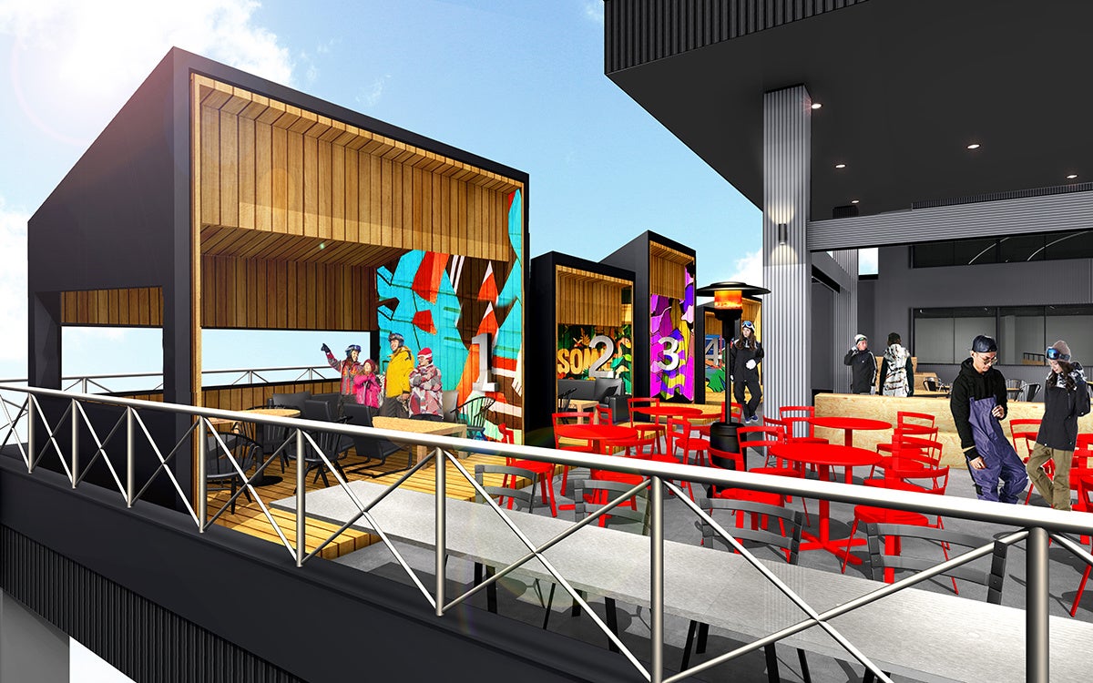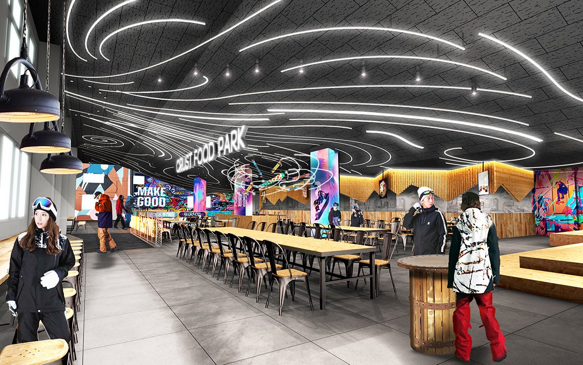 新レストランは「すぐにゲレンデに駆け出しアクティブに滑りたい」20~30代のスキー・スノーボーダーをイメージして、これまでのスキー場にはなかった「カッコ良さと最先端を融合したデザイン」で、SNSや写真に映える特別な空間を作り上げる他、メニューは「世界のグルメ」を集めた「美味しく魅力的なフードメニュー約40種類」を用意する。