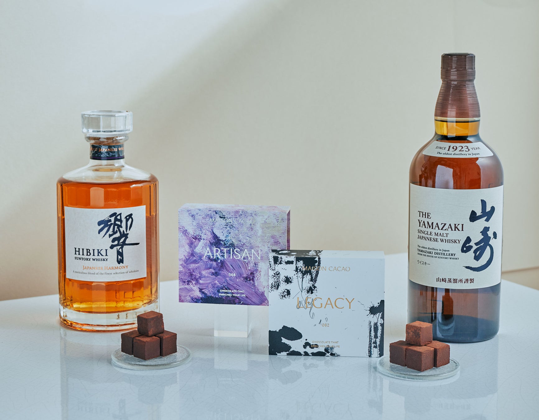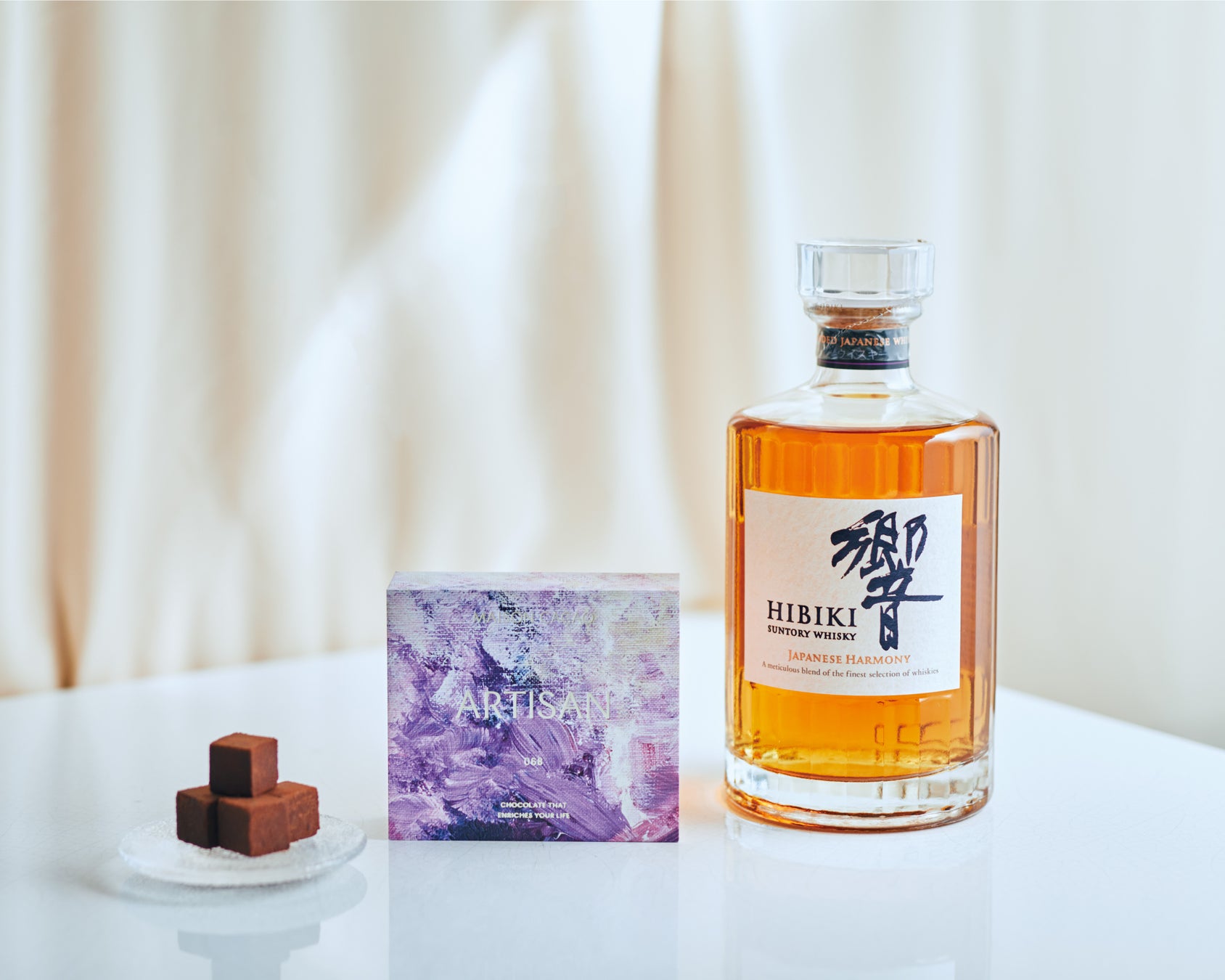 「サントリーシングルモルトウイスキー山崎」・「サントリーウイスキー響 JAPANESE HARMONY」の持つ、華やかな香りと味わい深さをチョコレートで引き立たせました。