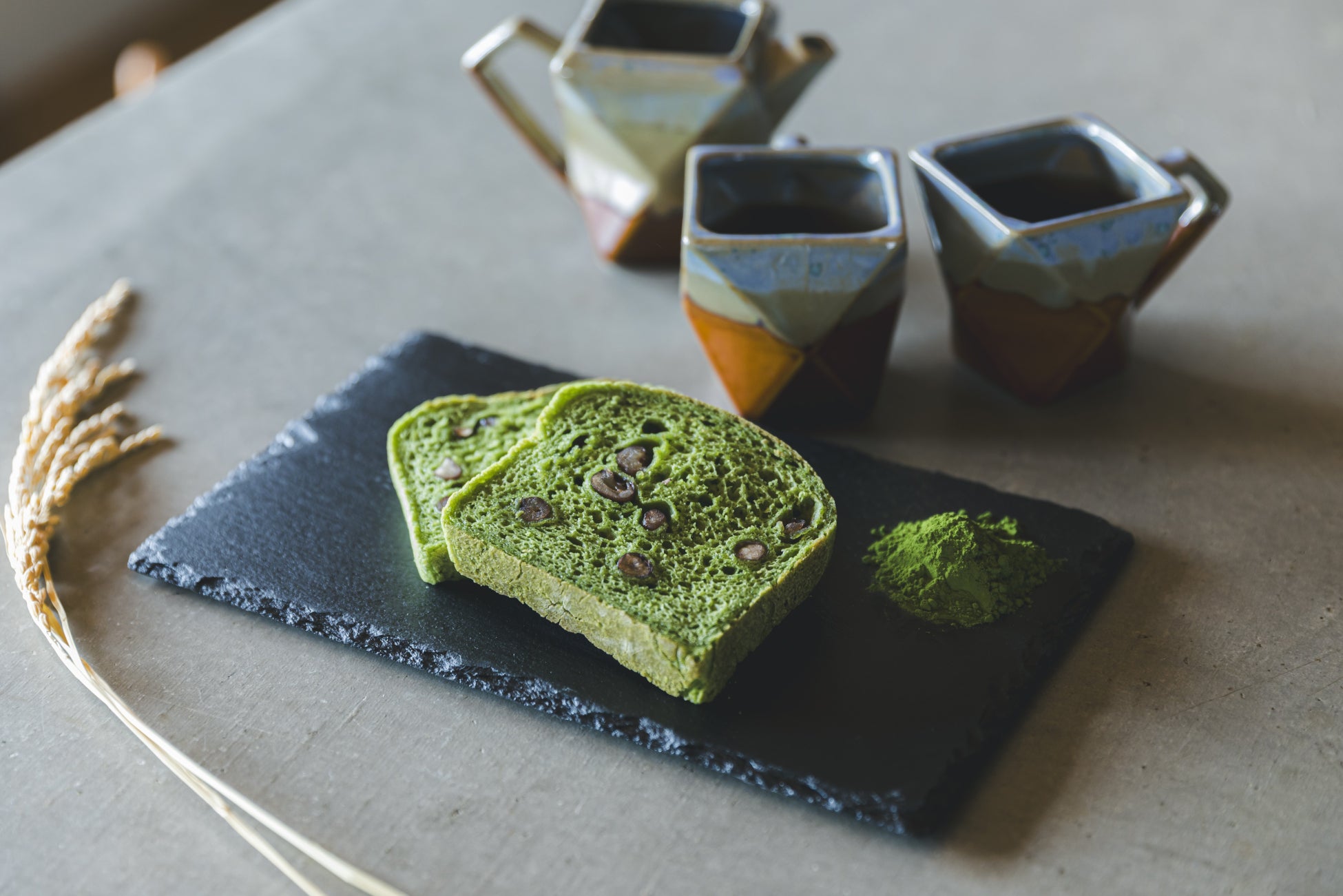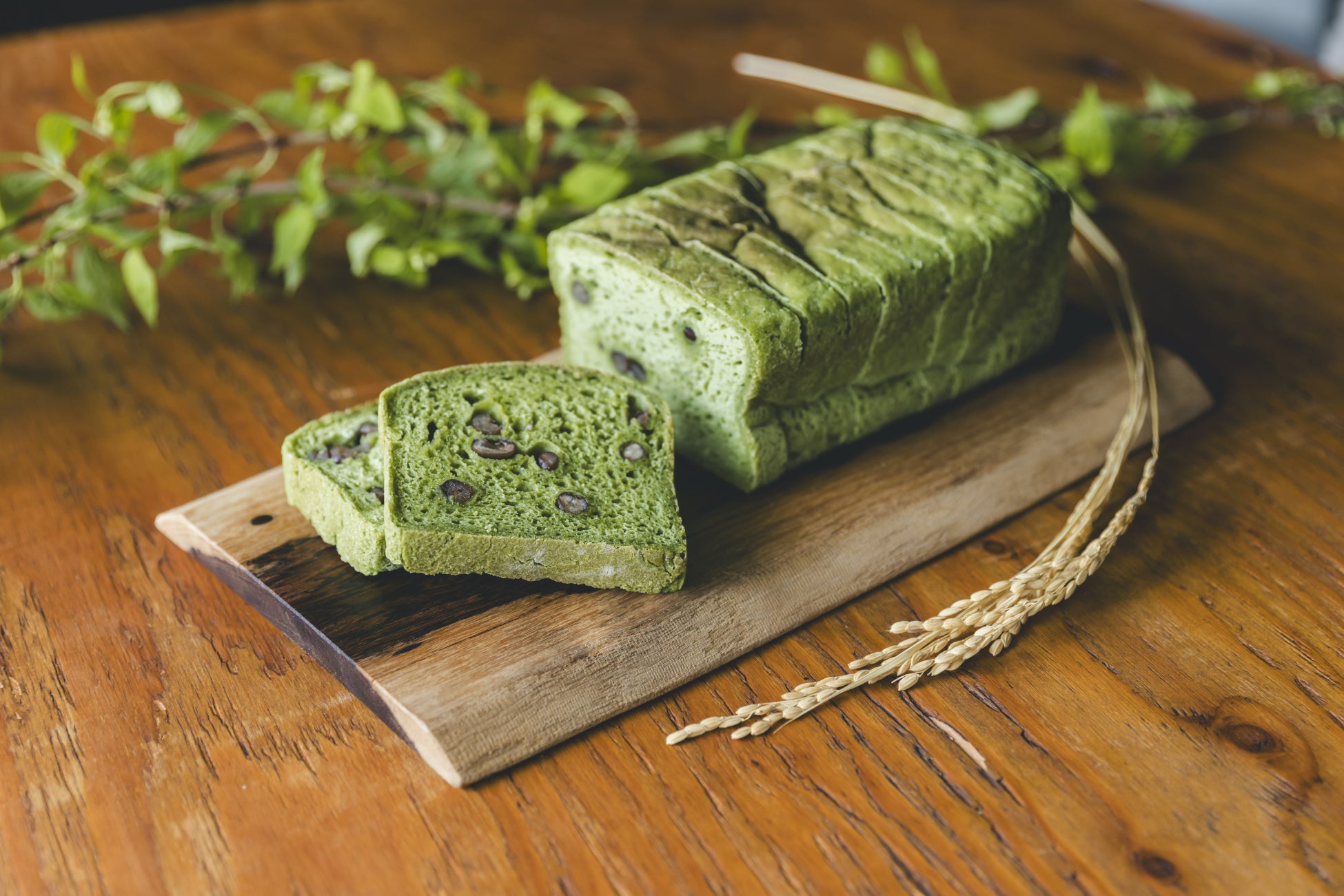 抹茶の香りと深み、小豆の甘さがマッチした米粉食パン「つの食パン(抹茶あずき)」を是非、ご賞味ください。