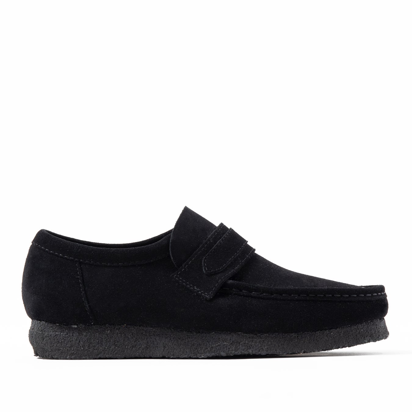 ブラックのソフトなプレミアムスエードと同色のブラックのクレープソールがカジュアルながらシックな印象。ジャケットスタイルから、カジュアルな装いまで幅広くカバーでき、年齢層を選ばないデザインが特徴です。