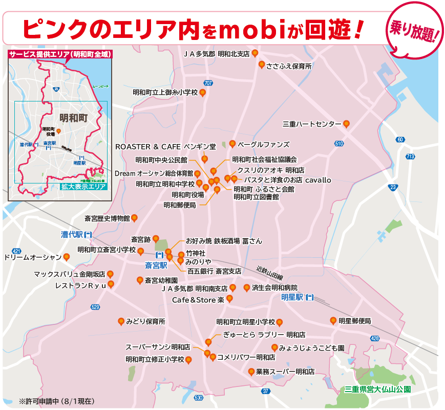 エリア定額乗り放題“mobi”が三重県・明和町でサービス開始