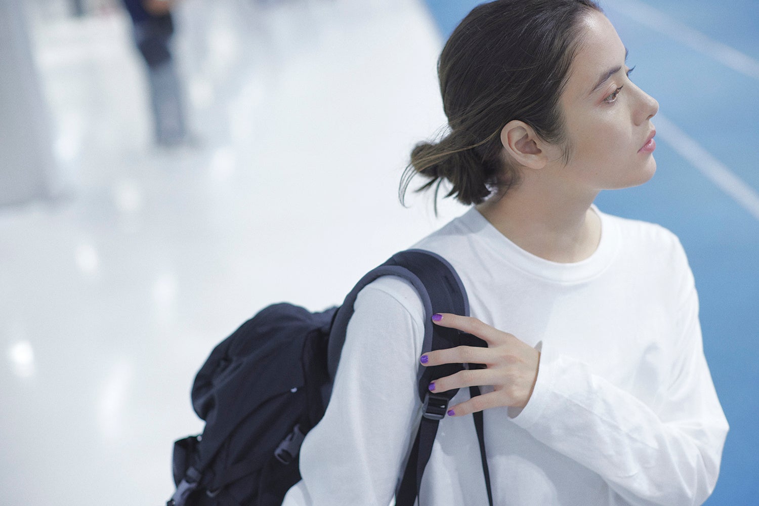写真家の尾身沙紀氏が旅先で撮りためた写真からインスピレーションを受け、まだ見ぬ世界でのあたらしい体験へと自分を駆り立てる姿をイメージ。