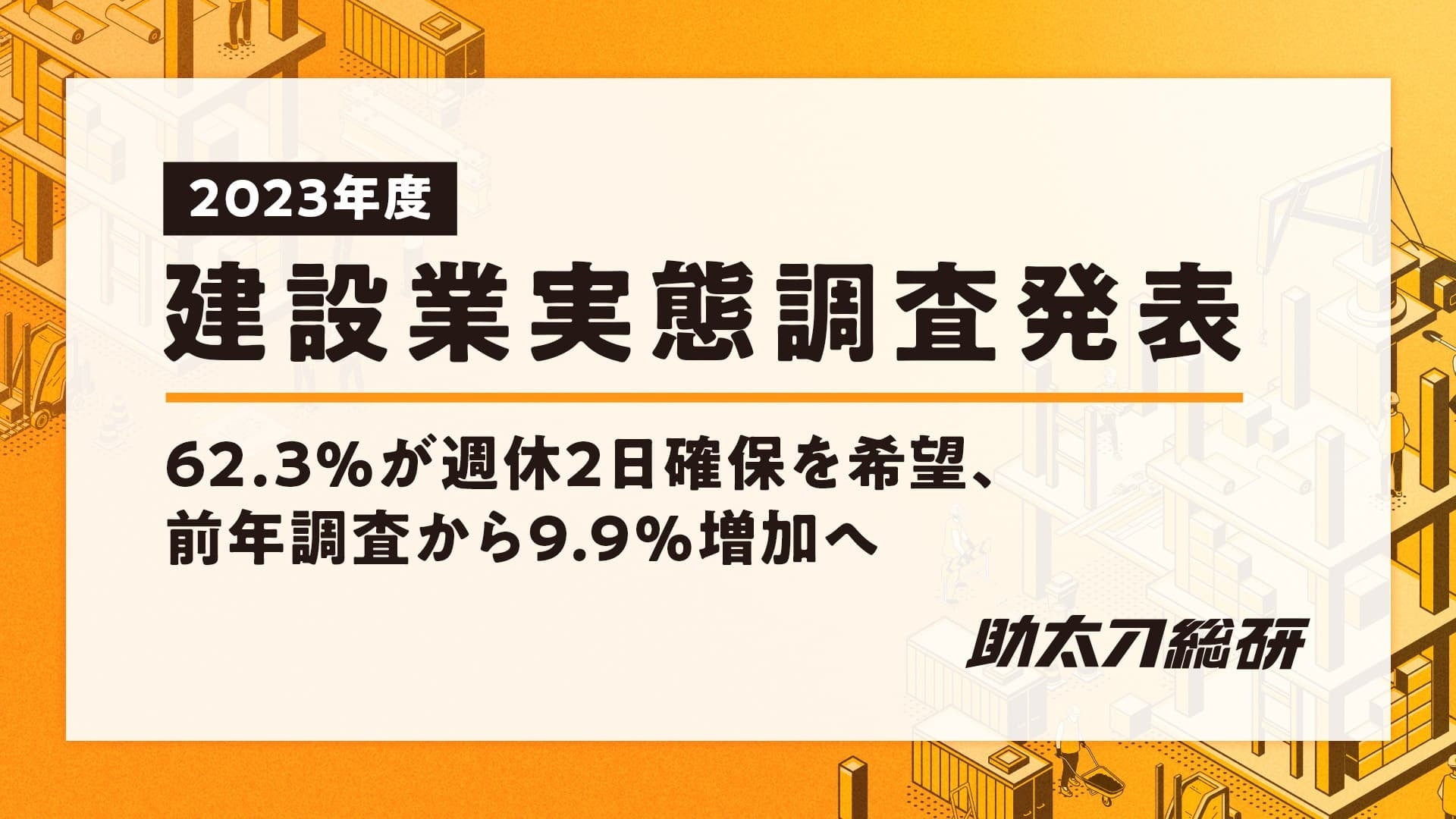 【2023年度】建設業実態調査を発表。62.3%が週休2日確保を希望し、前年調査から9.9%増加へ。