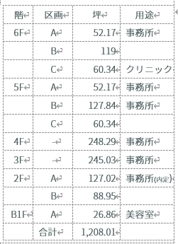 コンバージョン:店舗→事務所、スケルトン仕上げ→事務所仕上げ、フロア - 2、3、4、5、6階