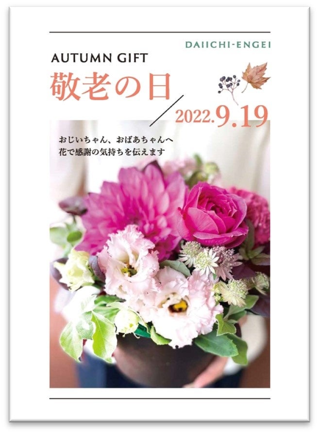 花と緑に関する事業を展開する第一園芸株式会社(本社:東京都品川区、代表取締役社長:伊藤昇、三井不動産グループ)は、9月19日(月・祝)の敬老の日の贈り物にぴったりの「敬老の日」のフェアを、9月1日(木)から第一園芸の全店舗で展開します。