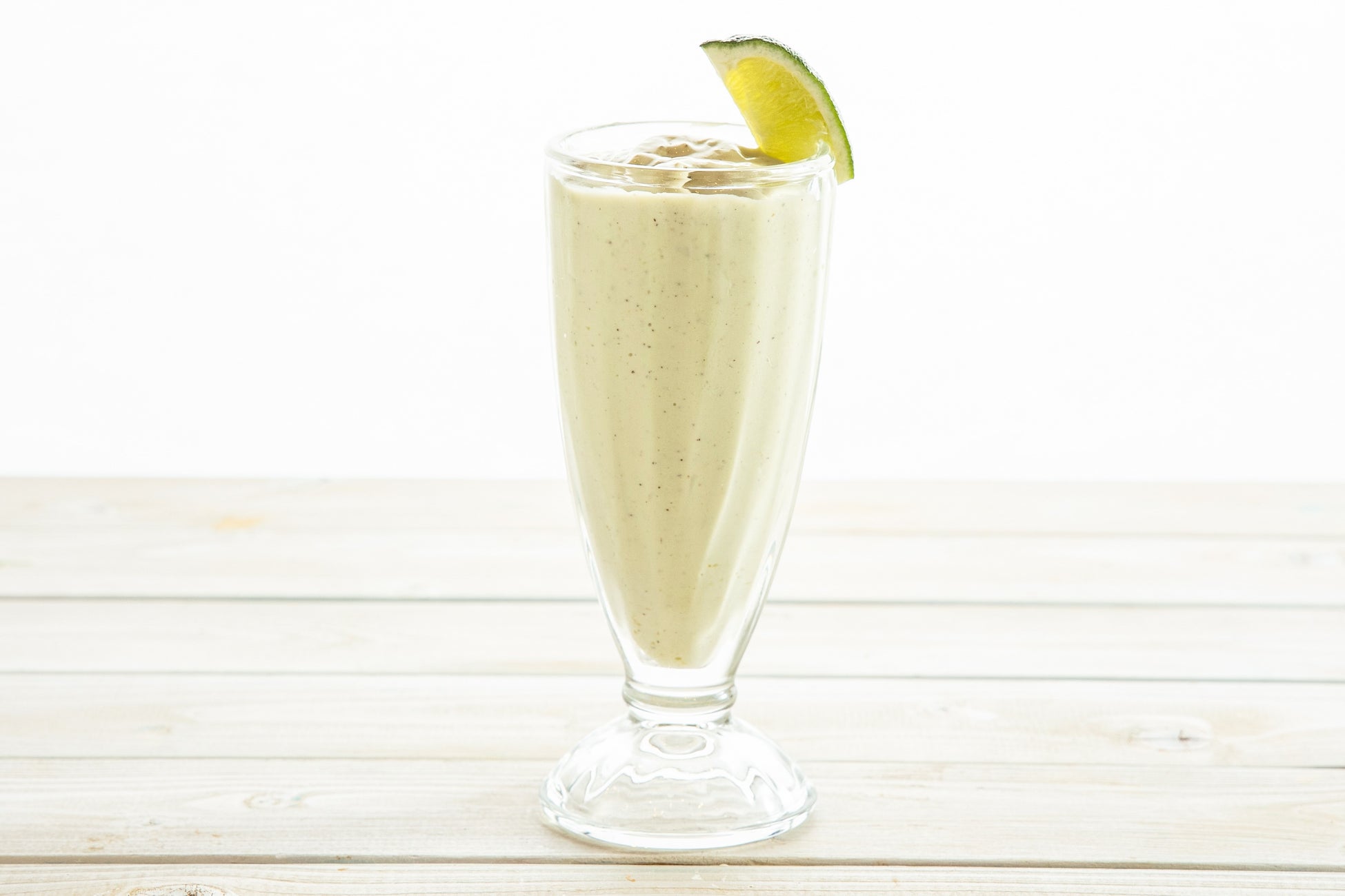 濃厚なアボカド、爽やかな酸味のキウイ、カソナードの優しい甘みが絶妙なバランスのソイ(豆乳)をベースにしたヴィ―ガンスムージー。ライムを絞るとさらに風味豊かに。