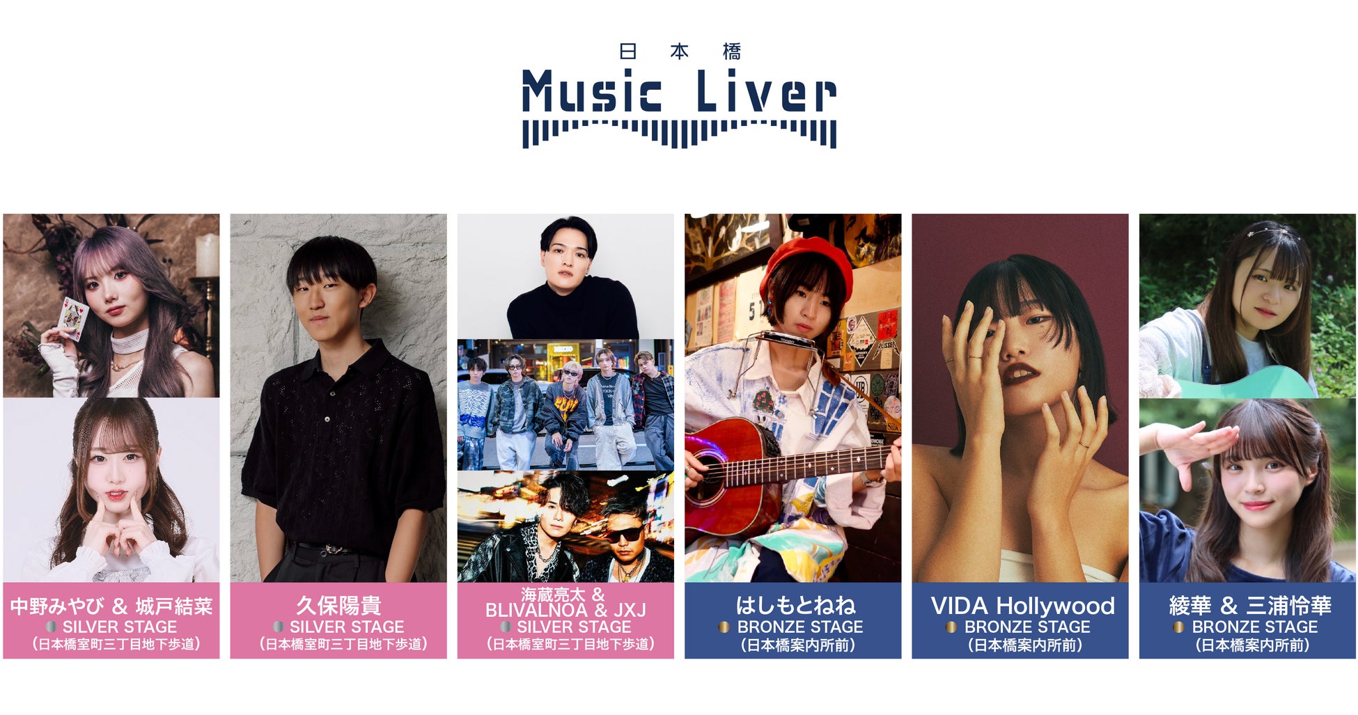 ストリートミュージシャンの登竜門的イベントとすべく、登録アーティストのみが参加できるコンテスト形式のライブ企画や、アワード的な総決算イベントも用意、名実ともにメジャーデビューへの道が開かれ、単にストリートステージを提供するだけにとどまらない企画を日本橋 Music Liver では提供している。