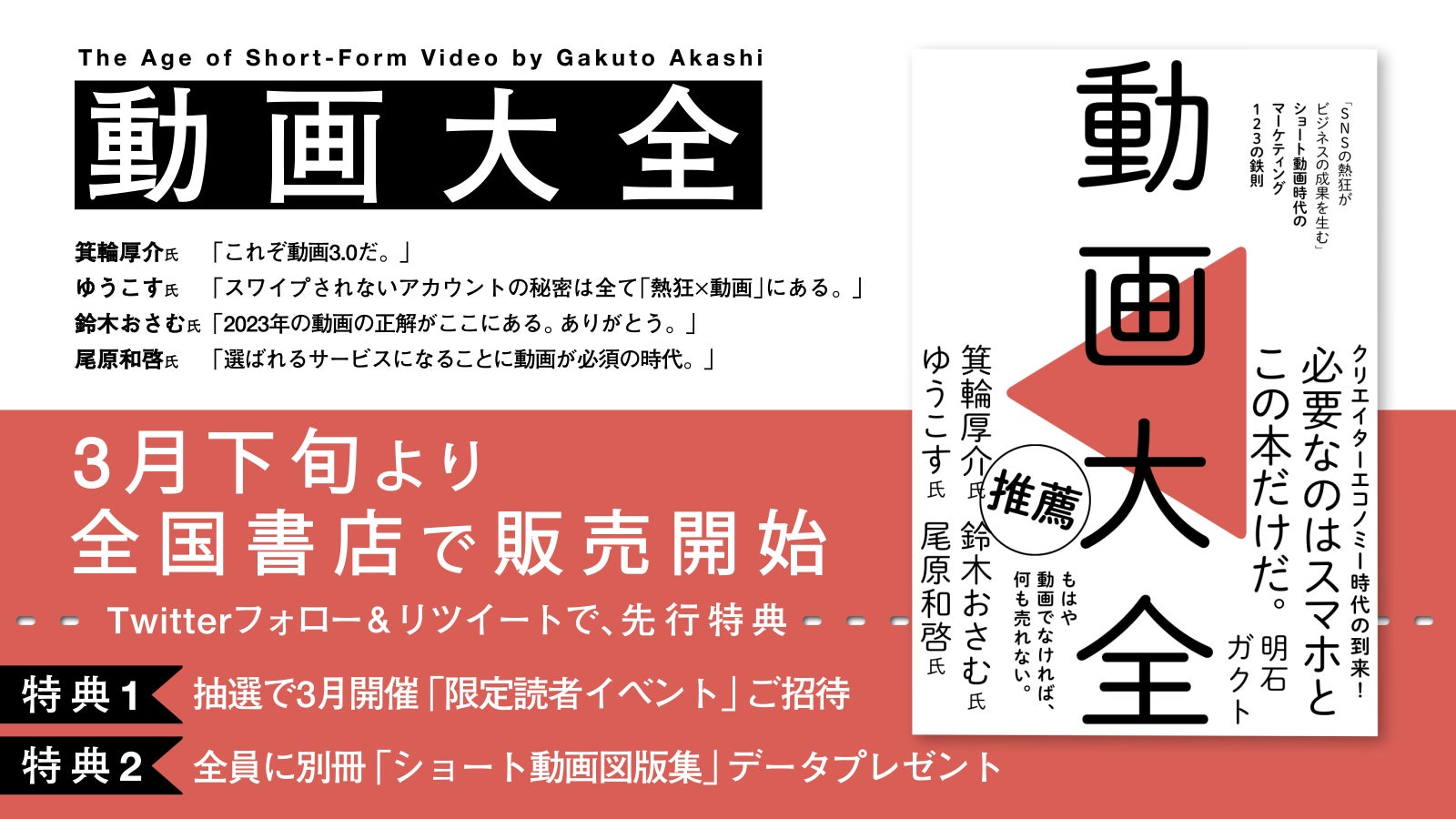 ワンメディア CEO 明石ガクト著『動画大全』、2023年3月下旬より全国書店にて発売決定。ショート動画マーケティングのスキル・ノウハウを全公開