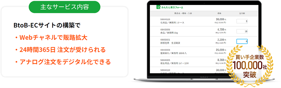 ”企業間取引のDXに課題があり業務効率化を実現したい” あるいは ”営業DXに課題があり既存の売り上げを底上げしたい” といった経営課題を解決しています。