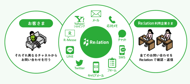 『Re:lation(リレーション)』は、メール、電話、チャット、SNSなど多様化する問い合わせ窓口を一元管理し、チームで共有できる顧客対応クラウドです。