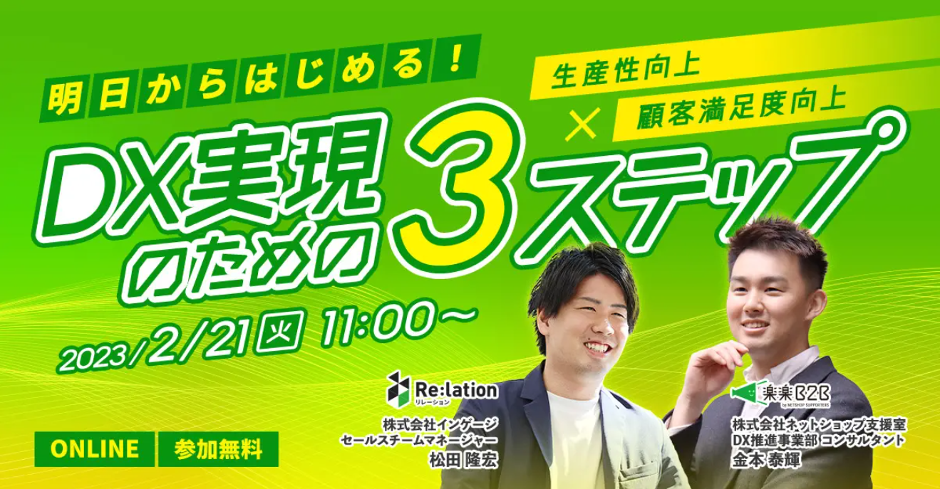 【セミナー開催】Re:lation×楽楽B2B共催セミナー「~生産性向上×顧客満足度向上~明日からはじめる!DX実現のための3ステップ」を2月21日(火)に開催いたします