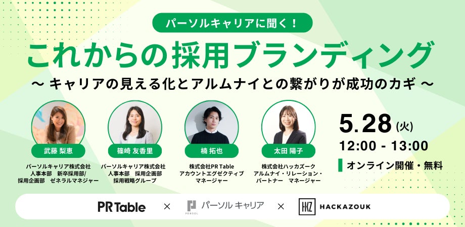 5/28(火)12:00〜 無料オンラインセミナー『 パーソルキャリアに聞く!これからの採用ブランディング 〜キャリアの見える化とアルムナイとの繋がりが成功のカギ〜』を開催