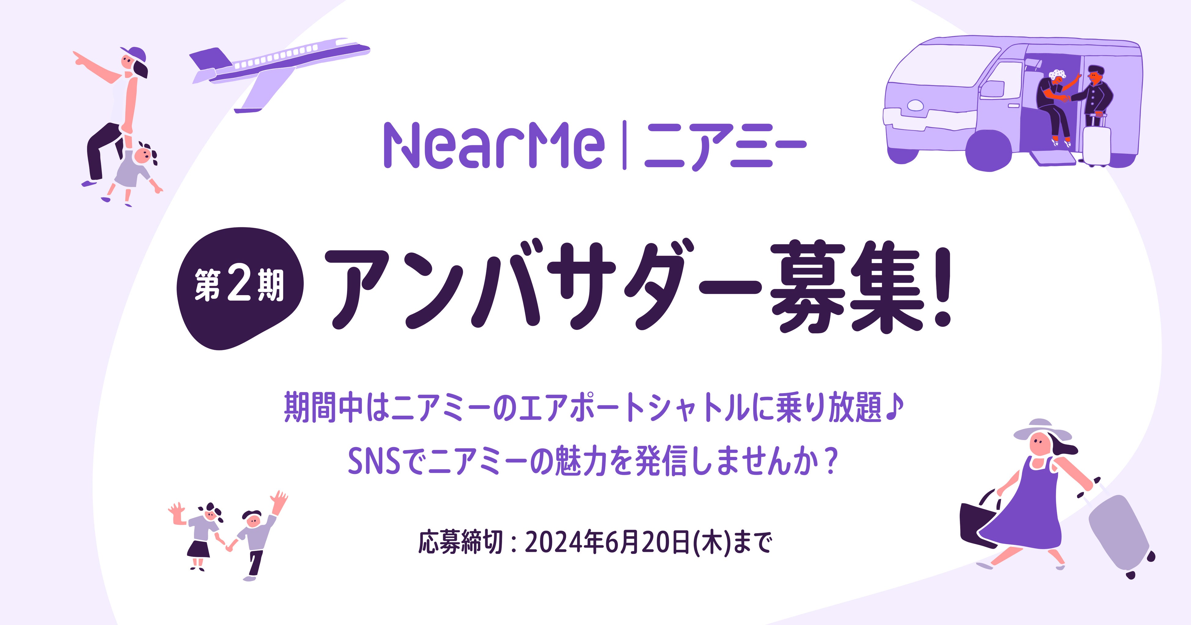 そこで、私たちはNearMeアンバサダーを募集し、「エアポートシャトル」が提供する”シェア乗り”による移動体験がもたらす魅力をニアミーとともに発信いただくことが目的です。