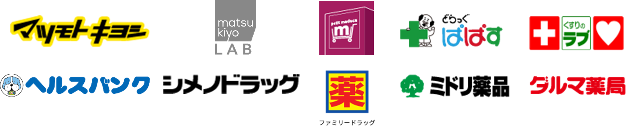 2021年12月1日より既にご利用可能となっているマツモトキヨシグループの「マツモトキヨシ」ほか以下の屋号でも引き続きご利用いただけます。(※一部店舗を除く)