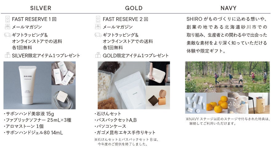 会員ステージごとにSHIRO ならではの特別な特典をお受け取りいただけます。