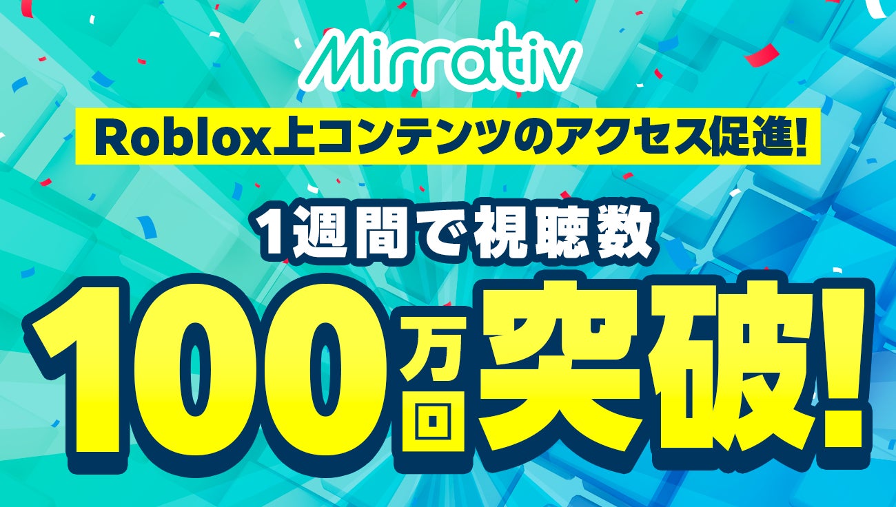 スマホゲーム配信者数で日本一※のゲーム配信プラットフォーム「Mirrativ(ミラティブ)」(以下Mirrativ)を運営する株式会社ミラティブ(本社:東京都目黒区 代表取締役:赤川隼一)は、北米・ヨーロッパを中心に圧倒的な人気を誇るメタバースプラットフォーム「Roblox(ロブロックス)」内で展開しているコンテンツ向けに提供した広告ソリューションの第1弾施策について、その結果を公開したことをお知らせいたします。