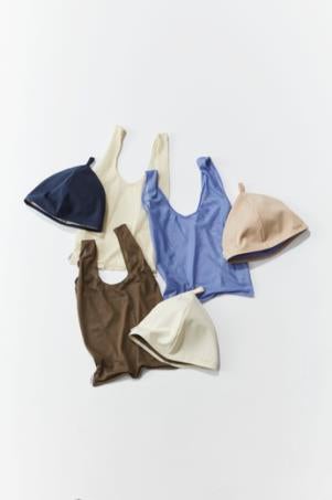 展開アイテムは、バンドゥブラ1型とハイウエストボトム1型、ワンピース1型、アメスリキャミトップ1型、パラシュートパンツ1型、サウナハット&メッシュバッグ1型の計6型です。