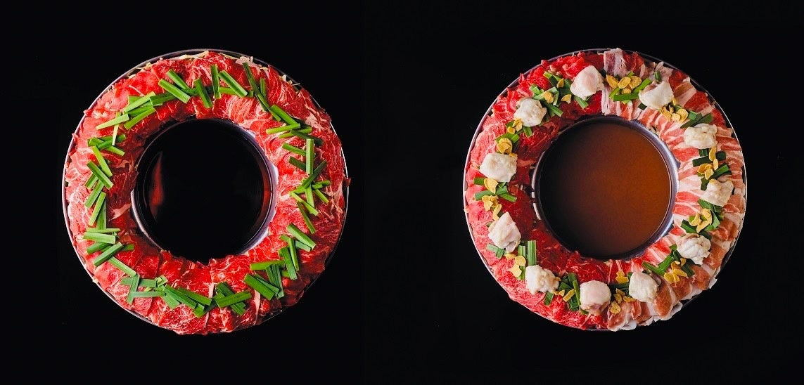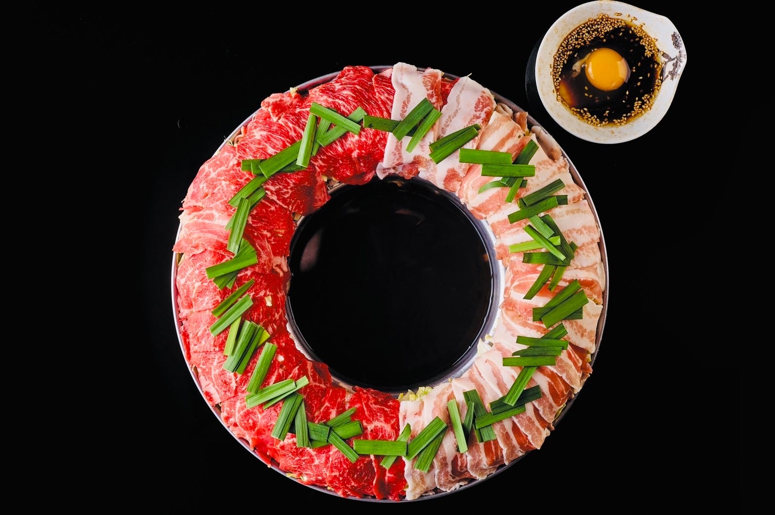 当店の「炊き肉」は、オリジナルに改良し、お肉を食べている満足感はありながらも、味はさっぱりしていて丁度良い、リース型の見た目や味もインパクトがある炊き肉に仕上げました。焼くでも煮るでもない新感覚の鍋は、野菜を肉で巻いて軽く、中心部のスープで数秒、しゃぶしゃぶしていただきます。肉の旨味が溶け出したスープは、食べ進めることに濃厚になり、味の変化も一度にお楽しみいただけます。暑い夏でもさっぱりといただける新感覚な肉料理です。