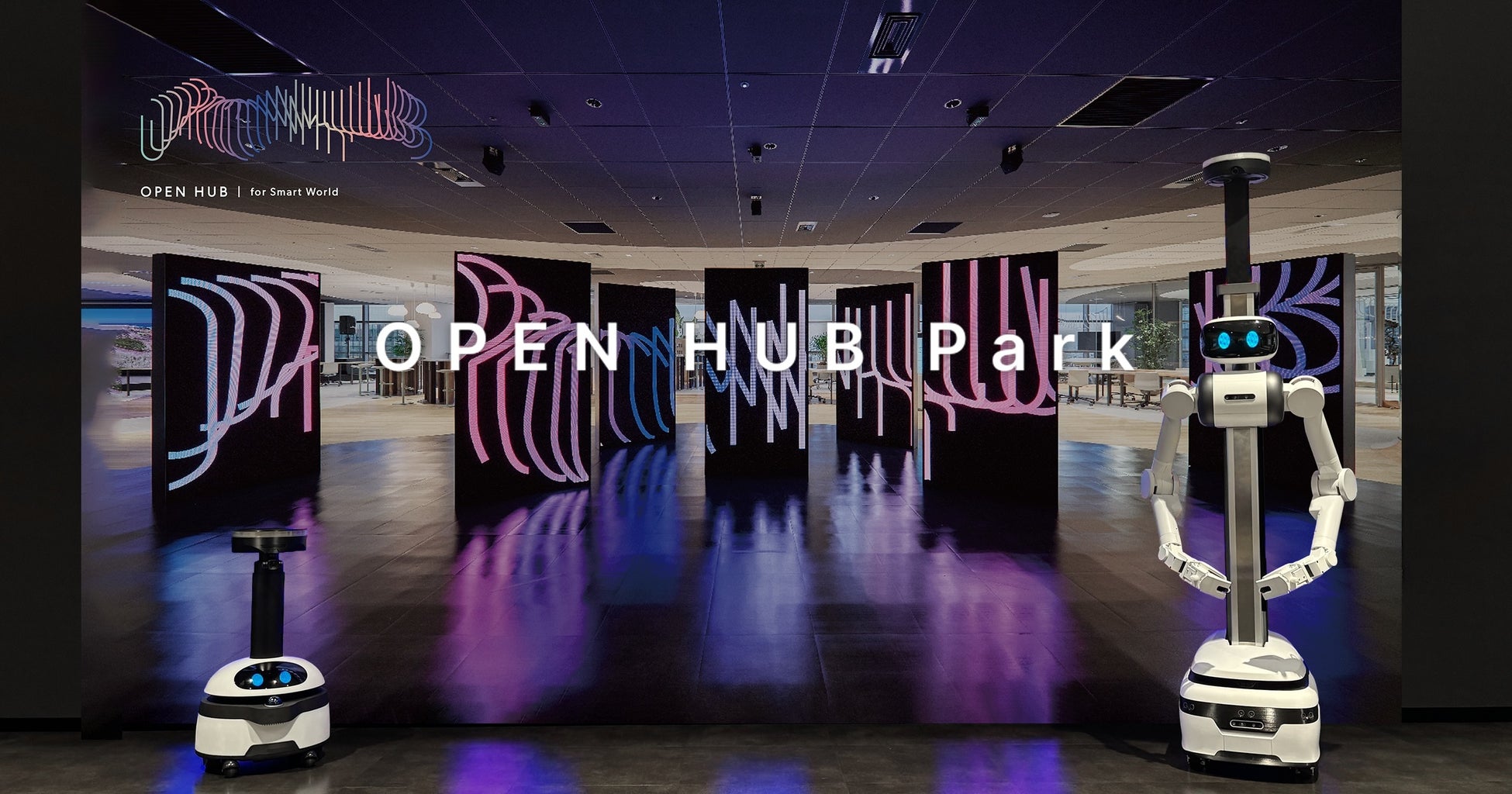 「OPEN HUB Park」※1は、NTTコミュニケーションズが展開するさまざまなコンテンツと、パートナー企業が持つ先進テクノロジーを組み合わせることで、社会課題の新たな解決策を共に見出していくことを目的とした共創の場です。ロボットだけでなく、AIやXRといった多様な技術が融合され、リアルとバーチャルを横断した実証やディスカッションが日々行われています。