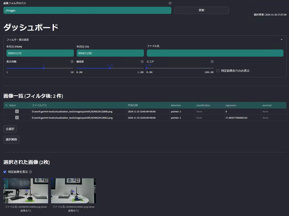 今回の展示では、ローカル5Gに接続されたugo miniが、指定されたメーターの位置まで自動で移動し、撮影を行います。取得した画像データは、NTTコムウェア株式会社が提供する画像認識AI「Deeptector」※2と連携し、メーターの数値をAIが自動で解析・数値化、レポートとして出力する一連のプロセスが紹介されています。