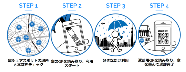 現在はアプリ登録者数24万名を超え、首都圏をはじめ、関西、愛知、岡山、福岡、佐賀などで展開し、鉄道沿線を中心にスポット数はおよそ900か所にわたります。2021年には環境省主催のグッドライフアワードの環境大臣賞ユース部門を受賞し、傘がないことによって移動ができないことや濡れて不快になることを無くし、ひとりひとりが過ごしたい今を過ごせるよう「雨の日のプラットフォーム」としてのインフラを構築、傘をシェアし人にも地球にも愛ある社会づくりを構築しております。