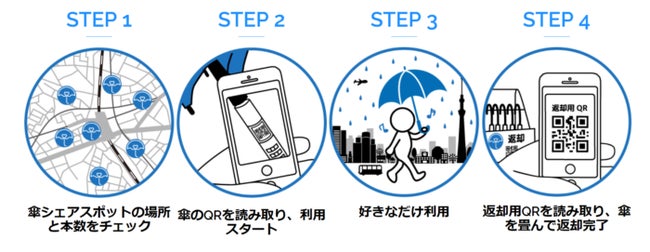 「アイカサ」は、“雨の日を快適にハッピーに”と“使い捨て傘をゼロに”をミッションに2018年12⽉にサービスを開始した日本初の本格的な傘のシェアリングサービスです。突発的な雨にもビニール傘をその都度購入せずに、駅や街中で丈夫でサステナブルなアイカサを借り、雨が止んだ際には最寄りの傘スポットに傘を返却することでエコに貢献しながら手ぶらで便利に移動ができるのが特徴です。(アイカサ1回の利用でCO2約692g削減*)