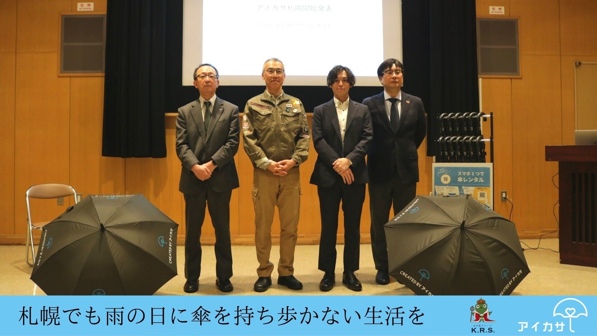 株式会社ケー・アール・エス(本社:札幌市中央区、代表取締役:加藤善也)は、株式会社Nature Innovation Group(本社:東京都渋谷区、代表取締役:丸川照司)が運営する傘のシェアリングサービス「アイカサ」を、札幌市様のご協力を頂き札幌市各施設に設置完了し、2022年3月1日札幌市円山動物園にて利用開始の記者発表会を開催いたしました。