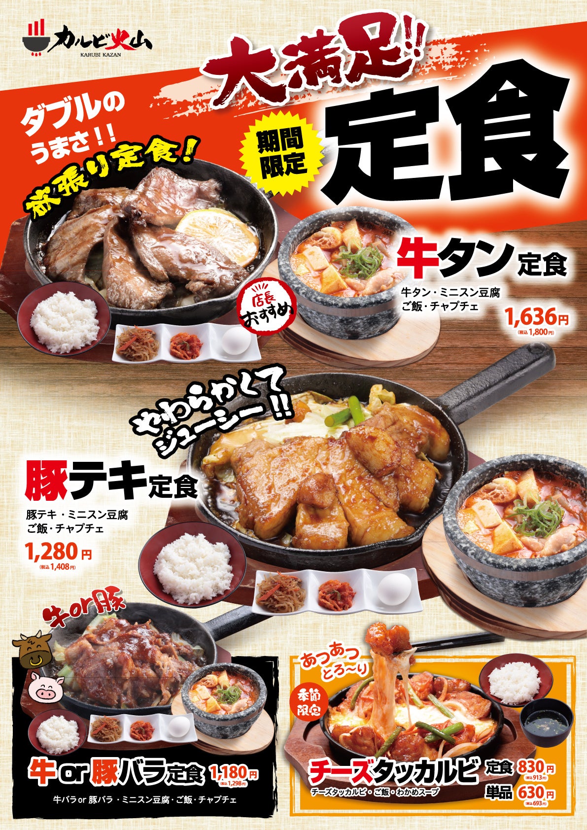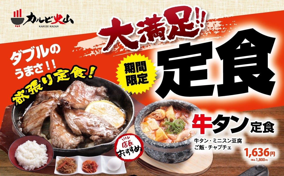 火山盛で人気のカルビ火山が期間限定で『牛タン定食』を販売開始
