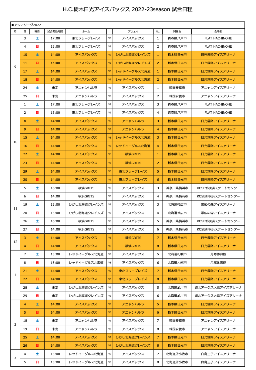 アジアリーグ2022 開催要項及びスケジュール決定のお知らせ