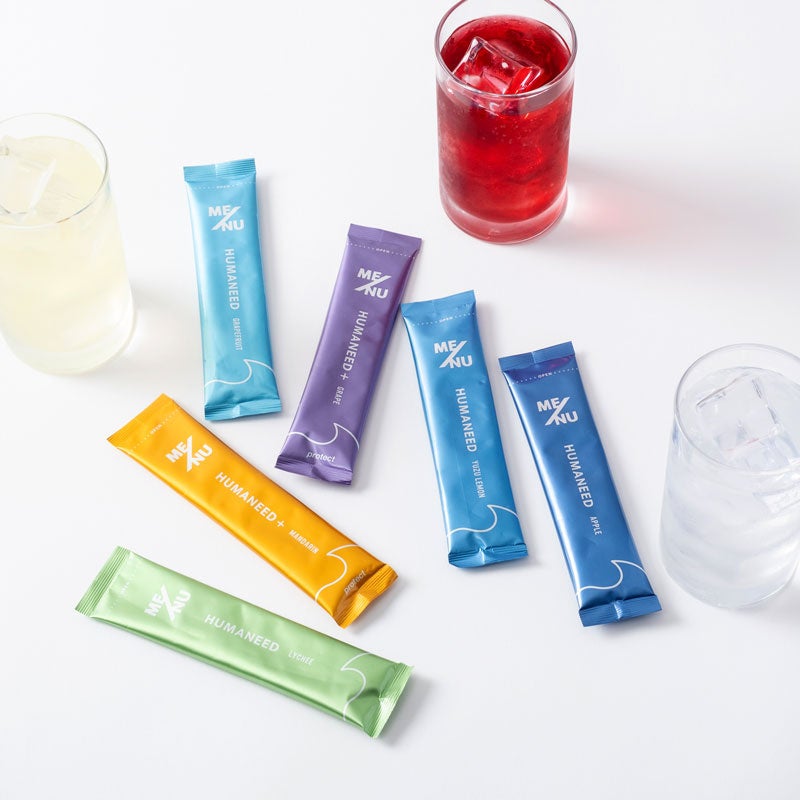 どのパッケージにもマンダリンまたはグレープが含まれるため、1箱でHUMANEEDシリーズ全体の魅力をご体験いただけます。