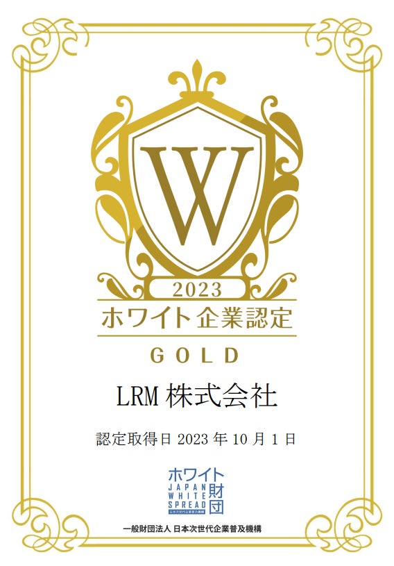 LRM株式会社様を「ホワイト企業認定 ゴールドランク 」として認定いたしました!