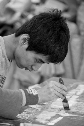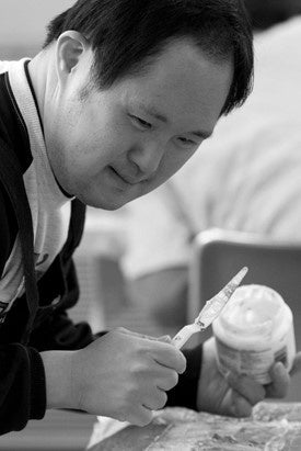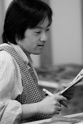 双子の弟。好きなダンスをずっと続けている。それまで絵筆を取ることは少なくなかったが、トワル制作を始めてからはペンで描くことが多くなった。始めた頃は太いペンで大きな波のような線を描いていたが、最近兄に触発されてか、小さな四角を描き連ねている。しっかり者で面倒見が良い。作品が描き上がる度に「これは〇〇(女性スタッフの名前)にあげようかな」と語る伊達男。