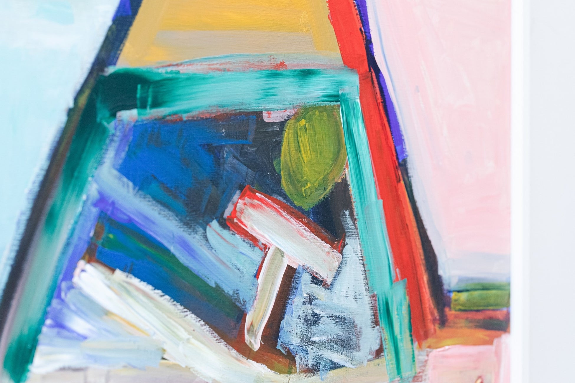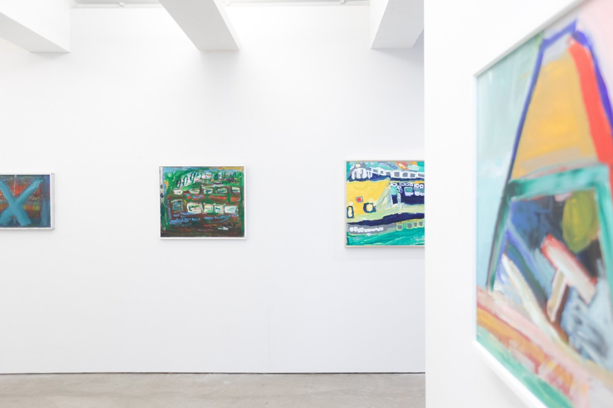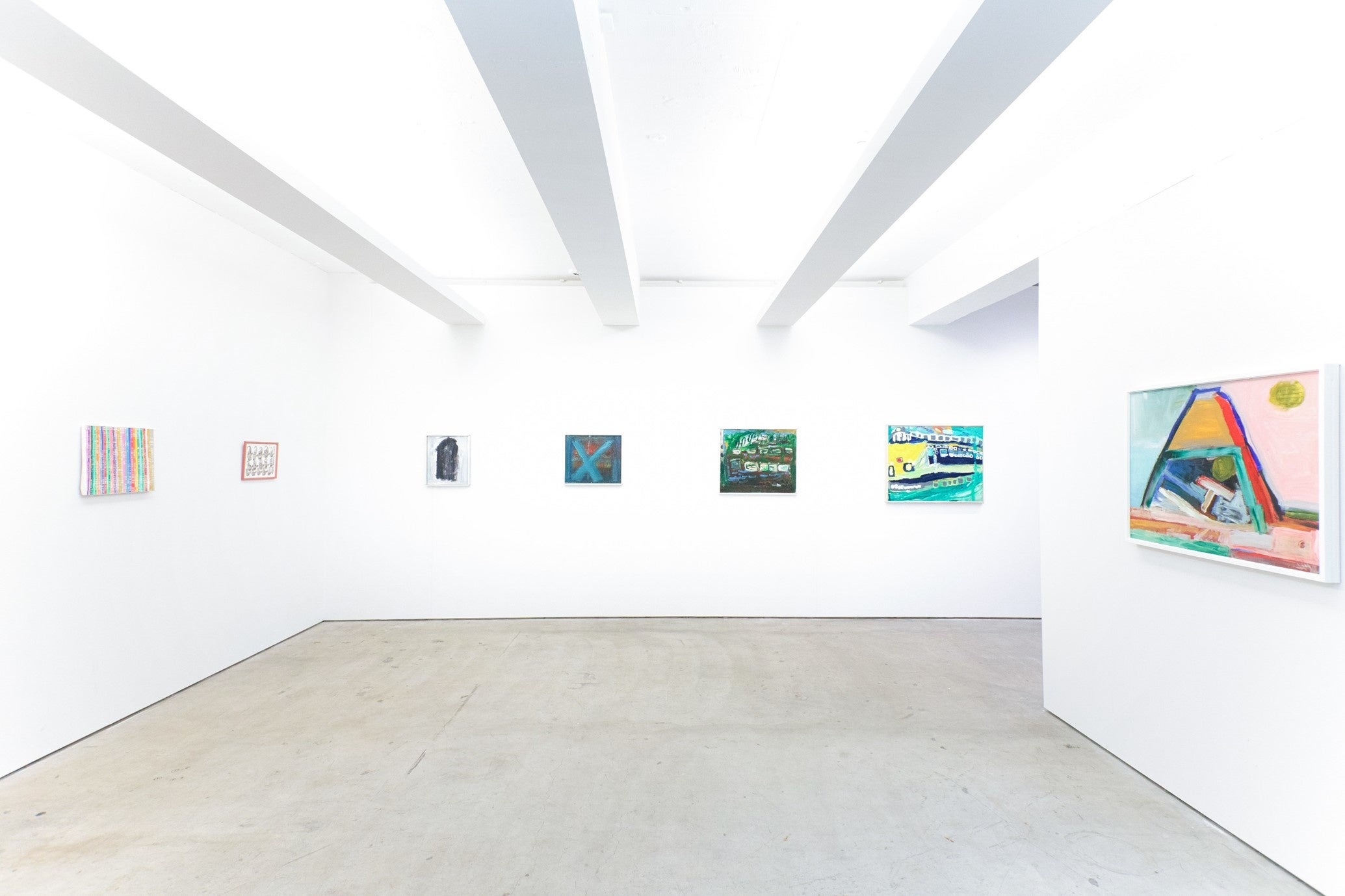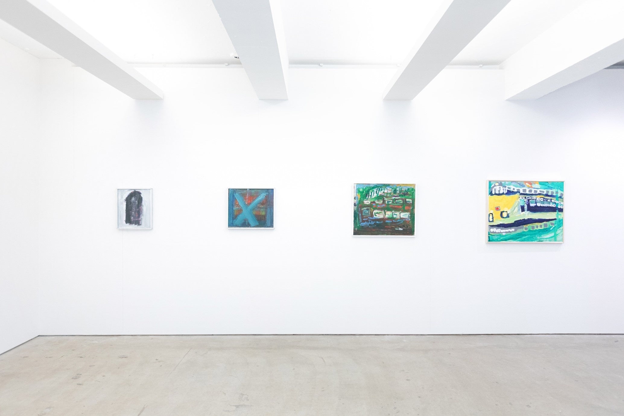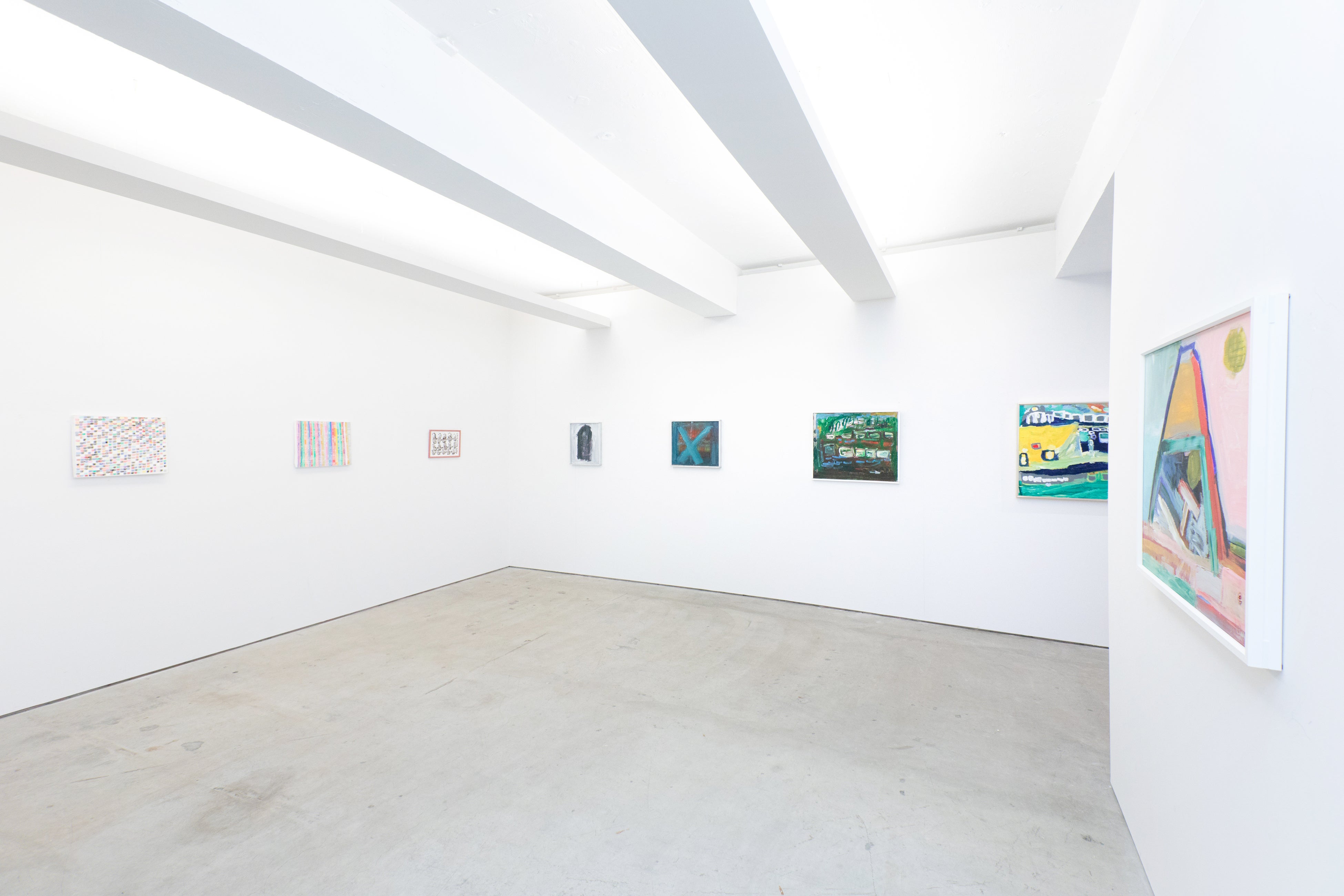 10歳から絵を描き続けている片寄大介は、アクリル絵具の特性を活かし、豊かなテクスチャを画面上に繰り広げます。彩度の低い抽象的な表現には、一貫してどこか不穏な雰囲気が漂っており、まさしく作家性の表れと言えるでしょう。