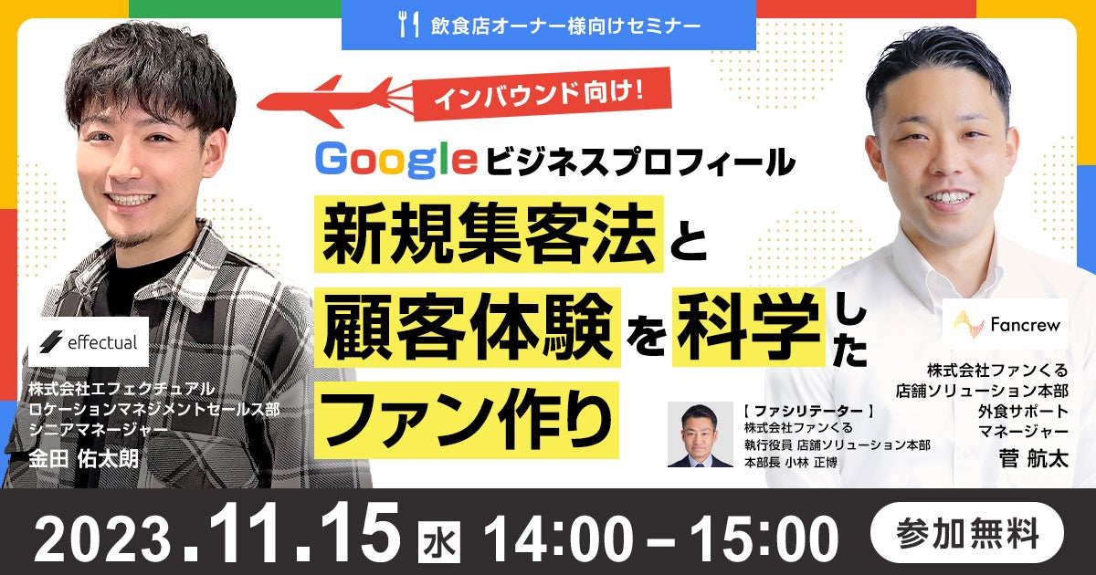 無料オンラインセミナー「インバウンド向け!Googleビジネスプロフィール新規集客法と顧客体験を科学したファン作り」 -2023/11/15開催