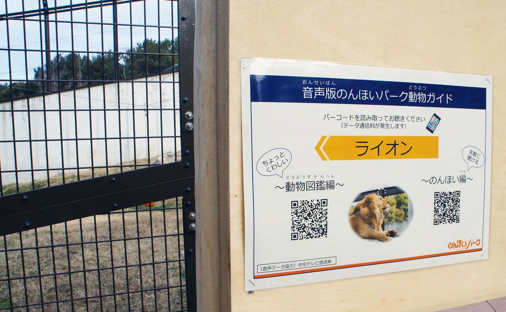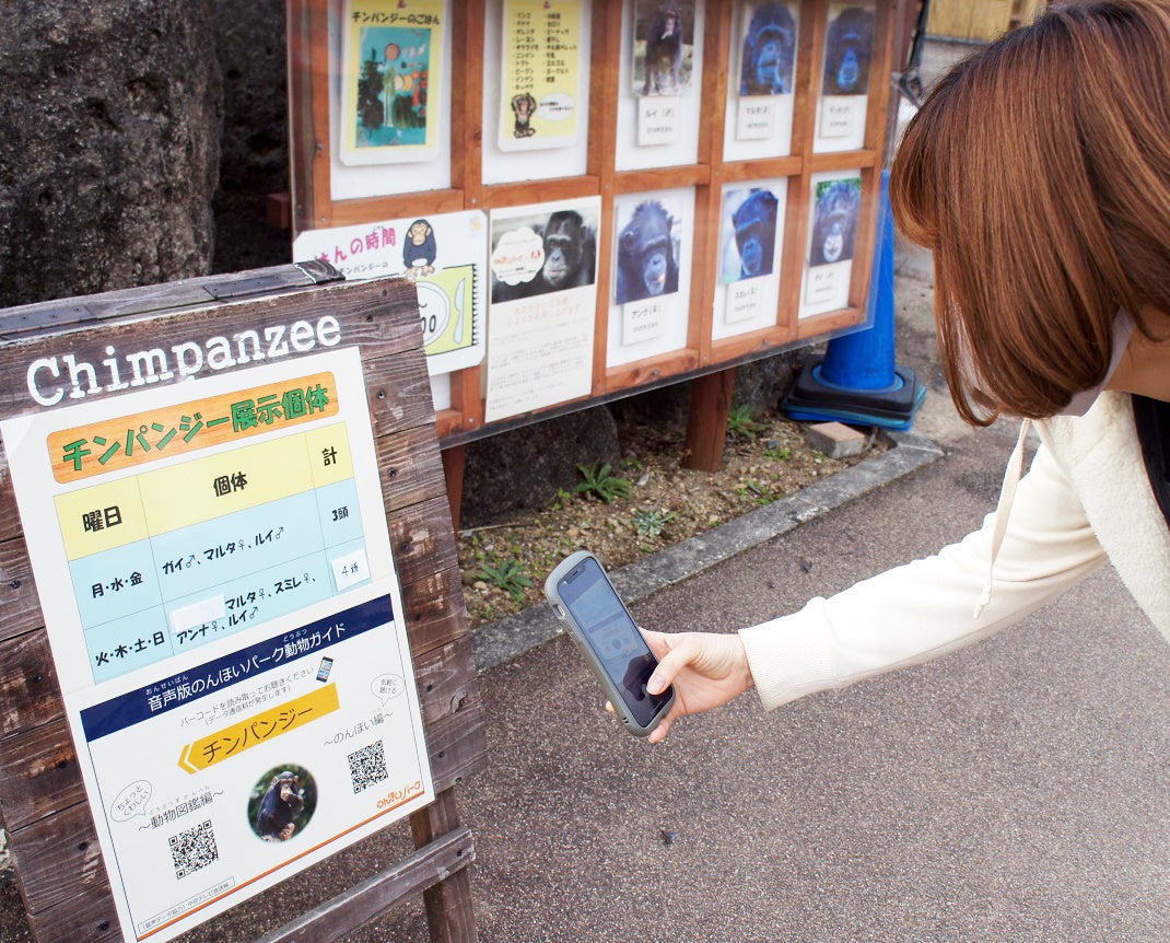 二次元コードを読み取る操作のみで体験可能であり、動物を見ながら音声コンテンツを楽しむという新たな体験を誰でも手軽に楽しむことができます。のんほいパークでは「動物図鑑編」と「のんほい編」の2種類を展開しております。動物の詳しい生態を知りたい場合は「動物図鑑編」、気軽に楽しく説明を聞きたい方は「のんほい編」と、気分によって音声ARを選ぶことができます。