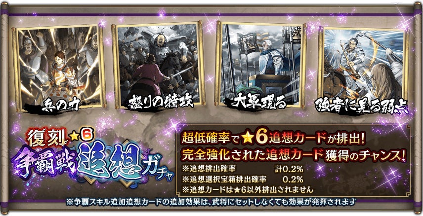 獲得することで対象武将に争覇スキルが解放される『争覇スキル追加追想カード』が排出されます!