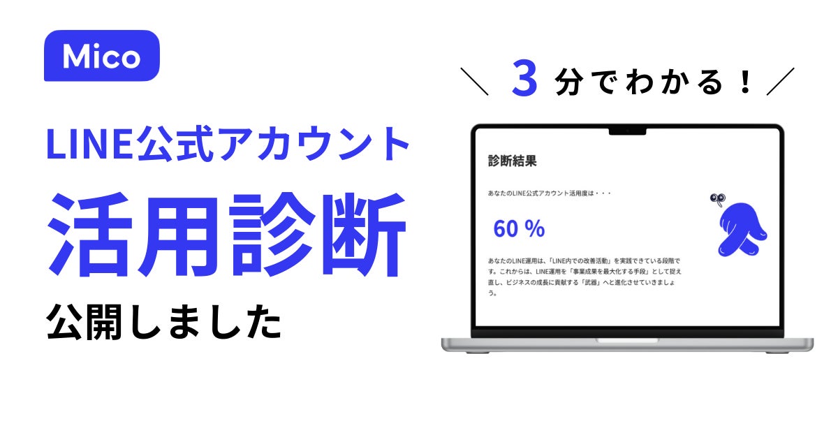 株式会社Mico(本社:大阪市北区、代表取締役社長:山田 修)は、「LINE公式アカウント活用診断」を公開しました。
